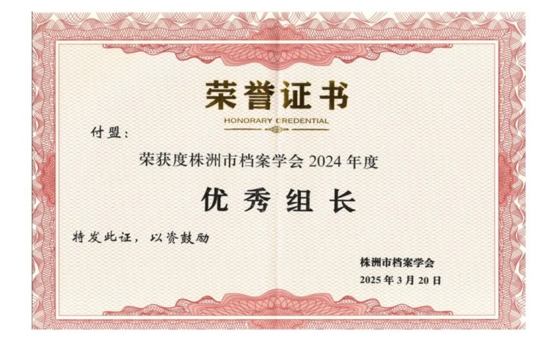 德爾斐科技公司榮獲株洲市檔案學(xué)會2024年度先進單位、付盟總經(jīng)理個人獲優(yōu)秀組長、學(xué)會論文評選二等獎。