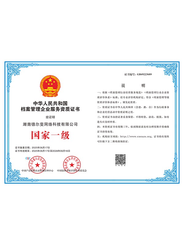 檔案管理企業(yè)服務資質(zhì)證書國家一級