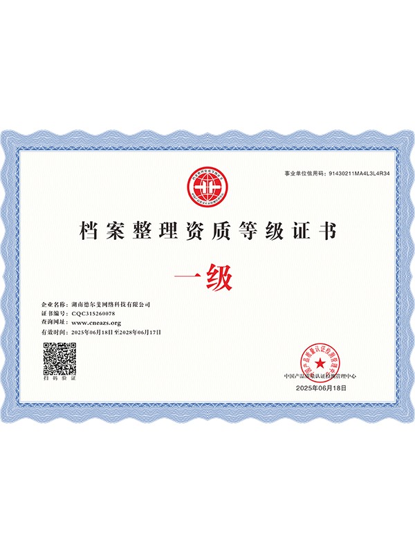 檔案整理資質(zhì)等級(jí)一級(jí)證書(shū)